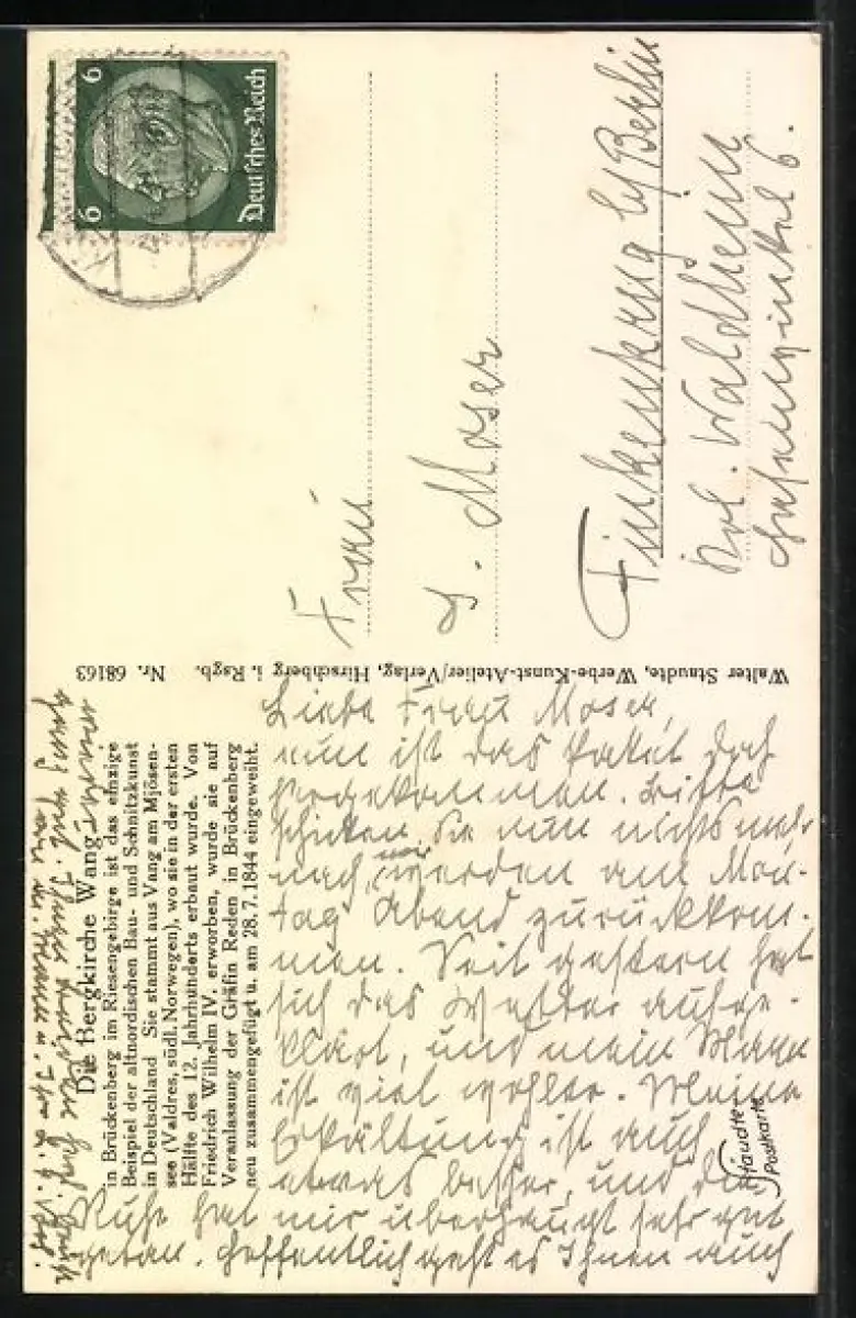 Personenbezogene Daten auf der Rückseite der Karte wurden durch blauen Textmarker unkenntlich gemacht. Die blauen Stellen sind auf die Vorderseite durchgeweicht und wirken sich negativ auf das Postkartenfoto aus