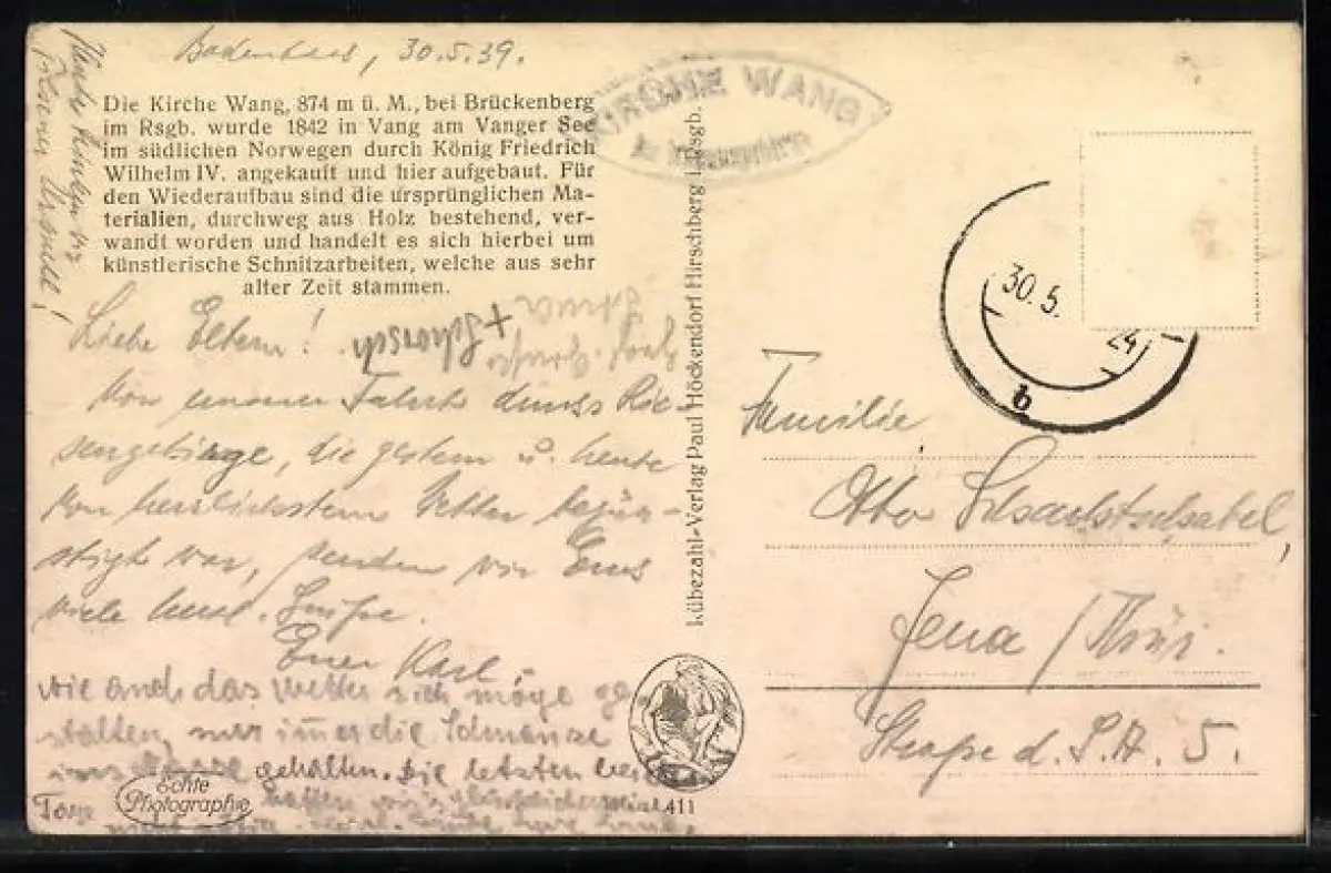 alte Ansichtskarte, gelaufen 1939, Briefmarke entfernt, guter Zustand