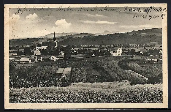 AK Brückl /Untersteiermark, Ortsansicht mit Kirche und Feldern