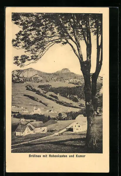 AK Brülisau, Ortsansicht mit Hohenkasten und Kamor