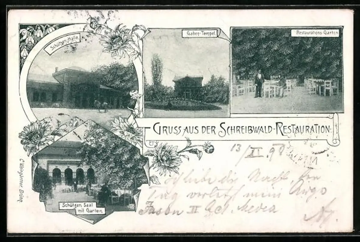 AK Brünn / Brno, Schreibwald-Restaurant, Gaben-Tempel