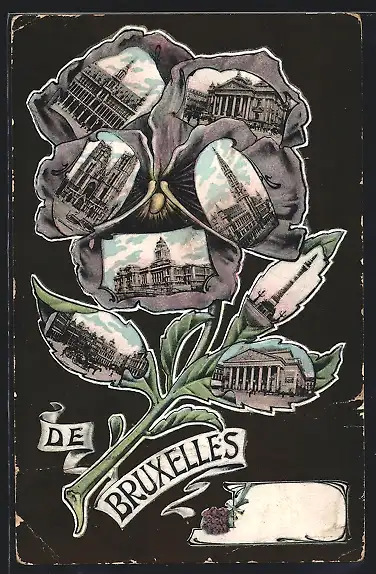 AK Brüssel / Bruxelles, Gebäude auf Stiefmütterchen