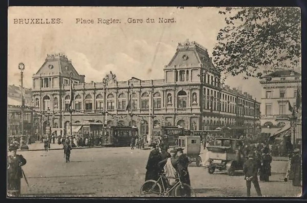 AK Brüssel / Bruxelles, Place Rogier et Gare du Nord mit Strassenbahn