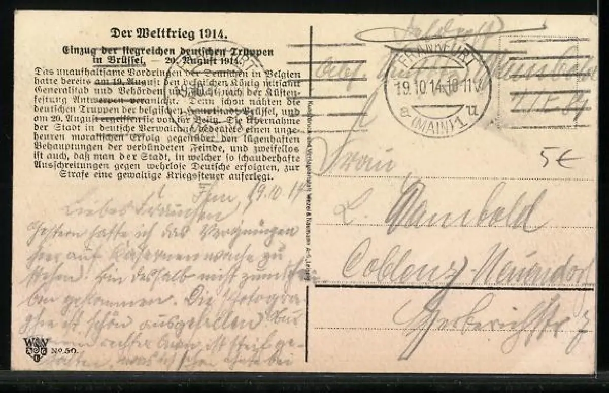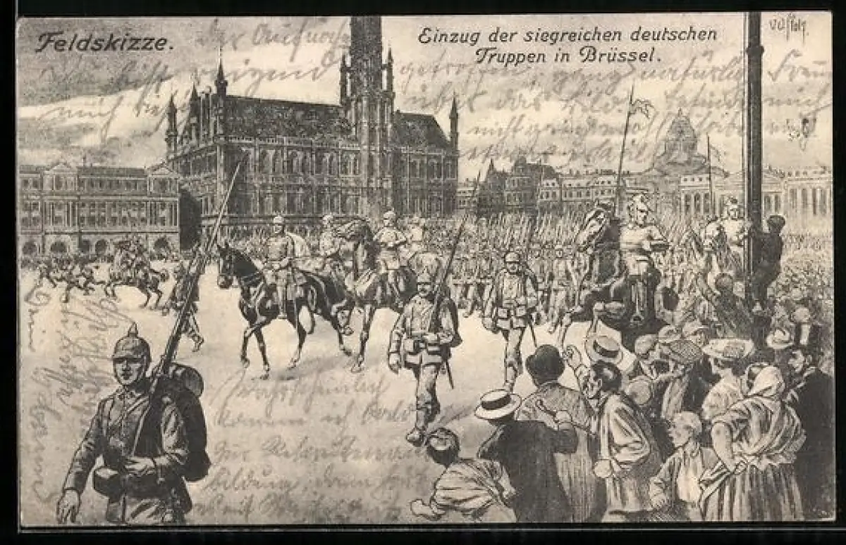 AK Brüssel, Einzug der siegreichen deutschen Truppen 1914