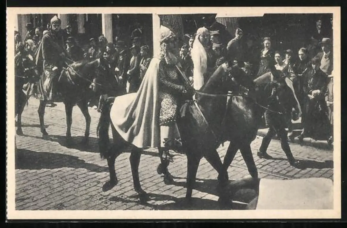 AK Bruges, Procession du St. Sang, Groupe de chevaliers accompagnant le comte Thierry d`Alsace