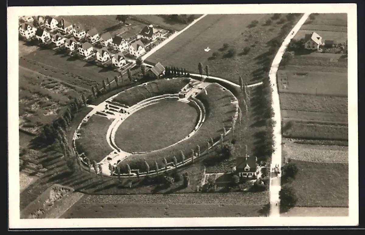 AK Brugg, Römisches Amphitheater aus der Vogelschau, Ausgrabung