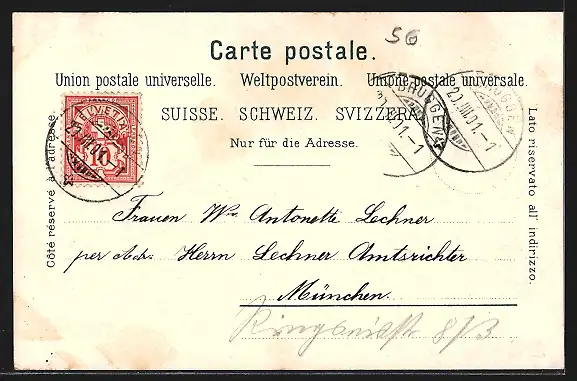 alte Ansichtskarte, gelaufen 1901, Stempelspur, guter Zustand
