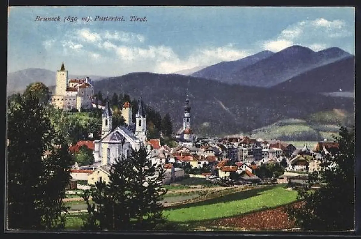 AK Bruneck /Tirol, Totalansicht mit Schloss