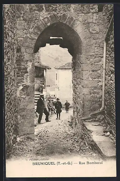 AK Bruniquel, Rue Bombecul à travers une arche en pierre