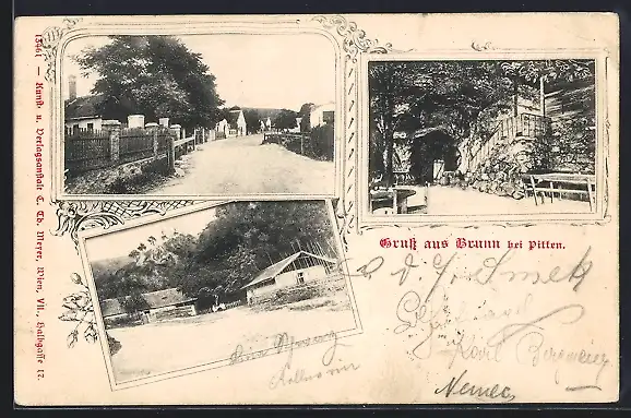 AK Brunn b. Pitten, Strassenpartie, Hof, Garten