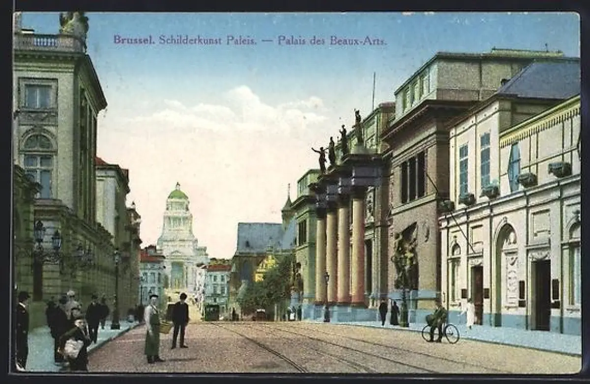 AK Brussel, Palais de Beaux-Arts, Strassenbahn