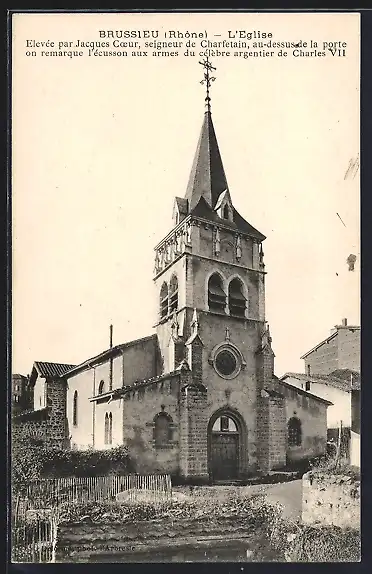 AK Brussieu, L`Église élevée par Jacques Cœur avec écusson de Charles VII