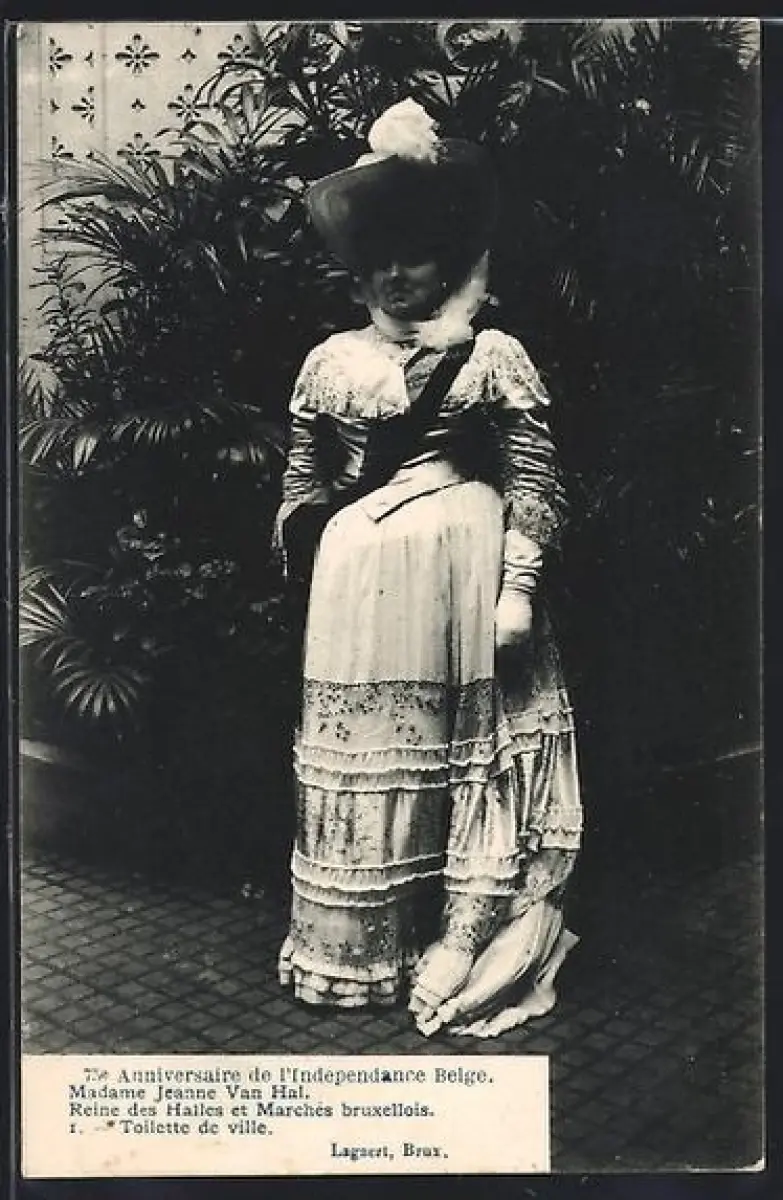 AK Bruxelles, 73e Anniversaire de l`Independance Belge, Madame Jeanne Van Hal, Reine des Halles et Marchés bruxellois