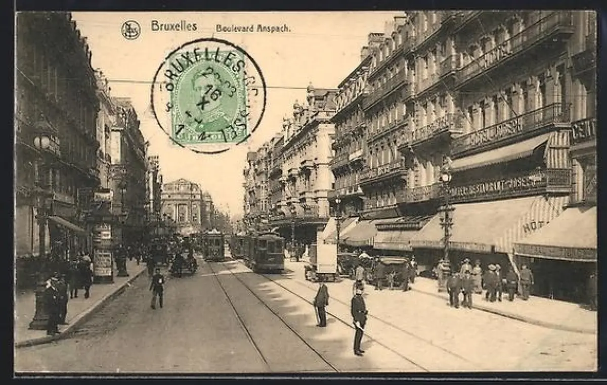 AK Bruxelles, Boulevard Anspach, Strassenbahnen