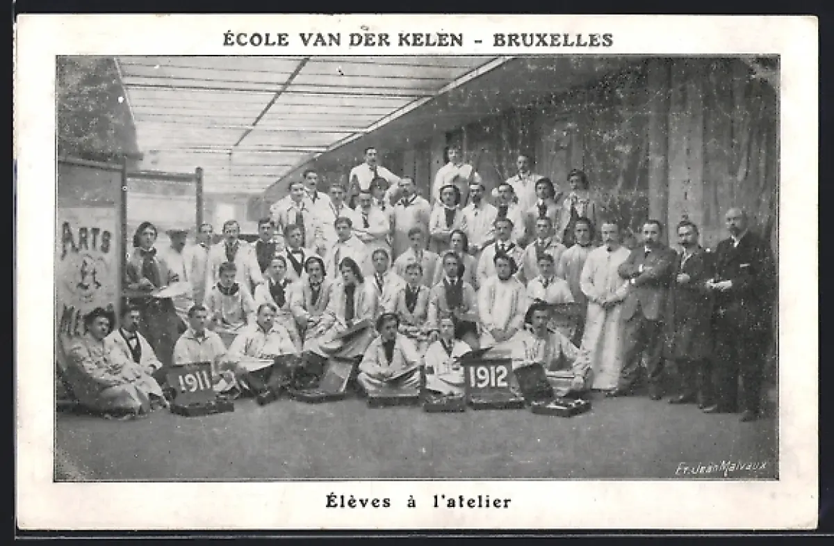 AK Bruxelles, École van der Kelen, Élèves à l`atelier 1912