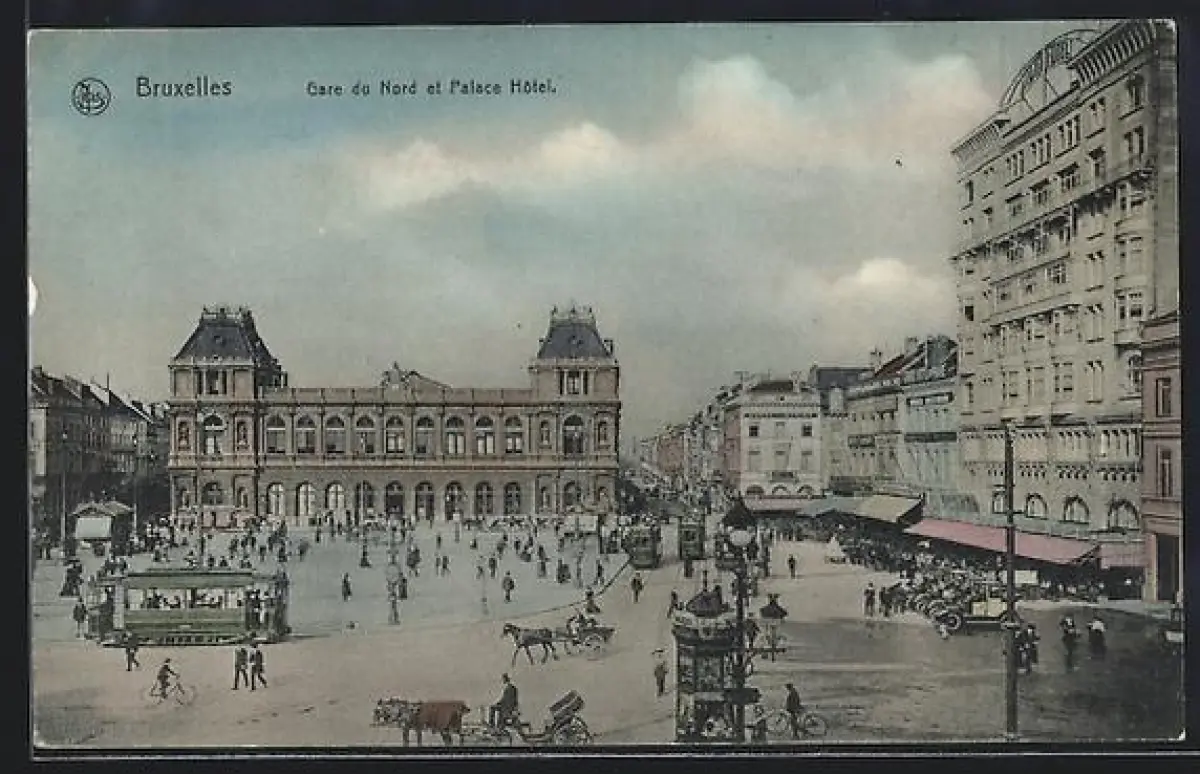 AK Bruxelles, Gare du Nord et Palace Hotel, Strassenbahn