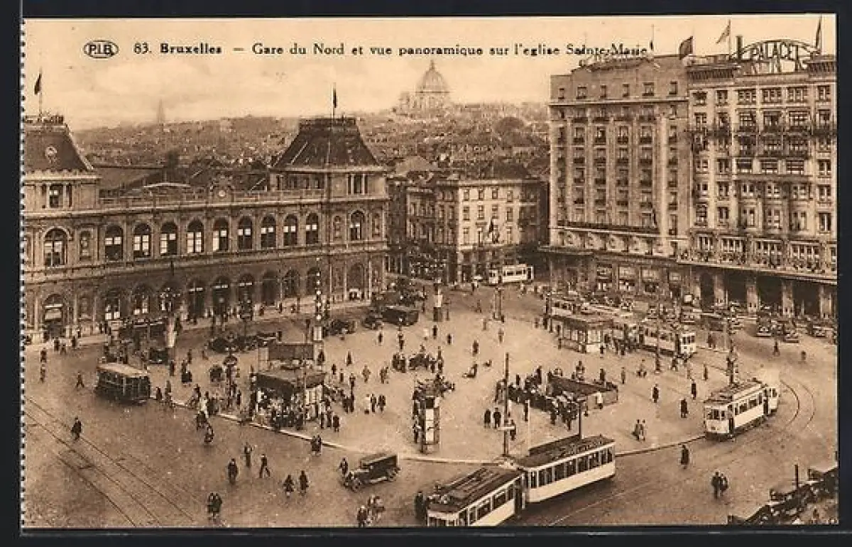 AK Bruxelles, Gare du Nord et vue panoramique sur l`eglise Sainte-Marie