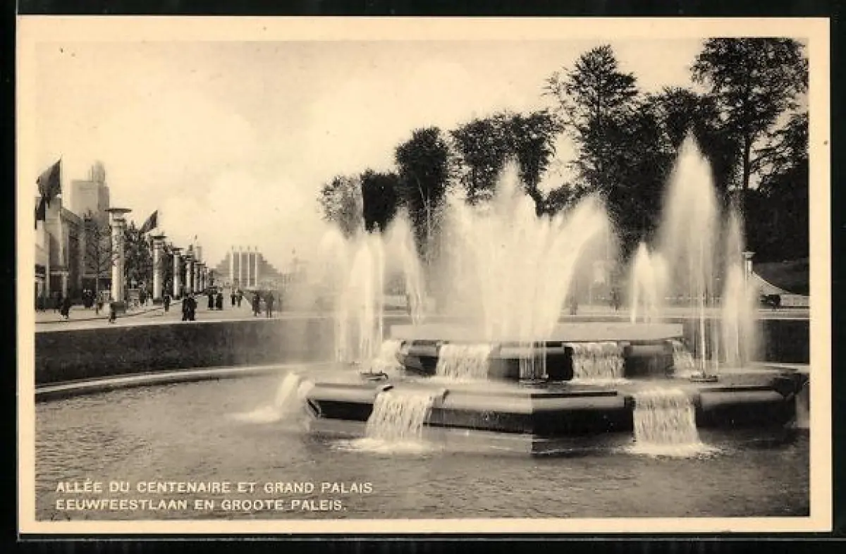 AK Bruxelles, L`Exposition 1935, Allée du Centenaire et Grand Palais Eeuwfeestlaan en groote Paleis