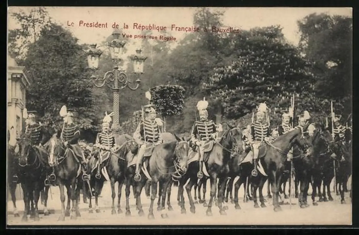 AK Bruxelles, Le Président de la République Francaise, Vue prise rue Royale, Französischer Präsident in Brüssel