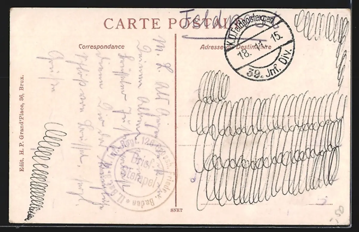 alte Ansichtskarte, gelaufen 1915, Eckknick oben re., guter Zustand