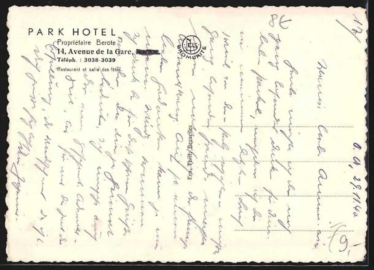 AK Bruxelles, Park Hotel, Propr. Berote, 14 Avenue de la Gare