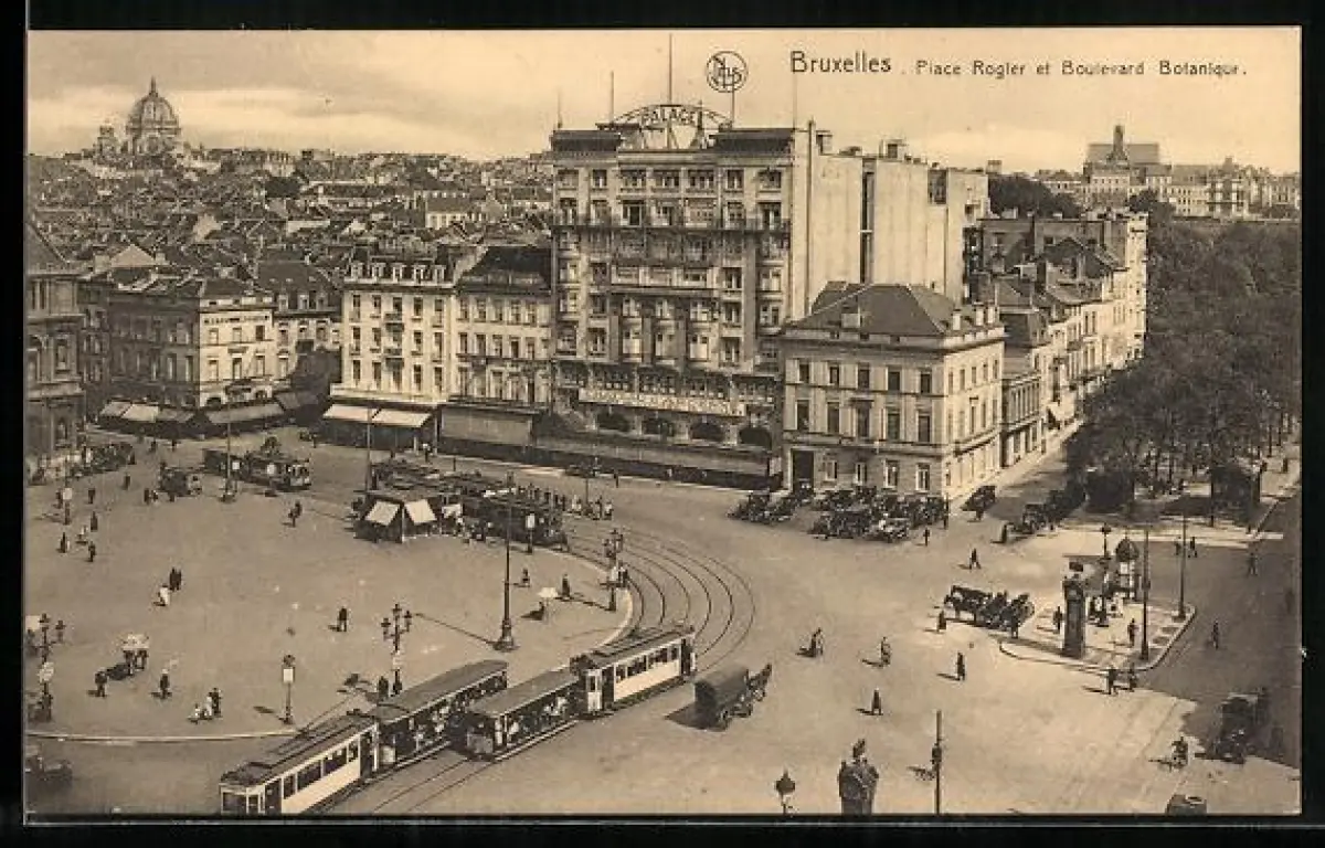 AK Bruxelles, Place Rogier et Boulevard Botanique, Strassenbahn