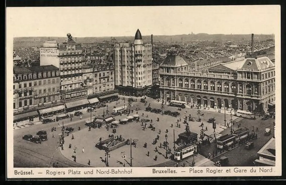 AK Bruxelles, Place Rogier et Gare du Nord, Strassenbahn