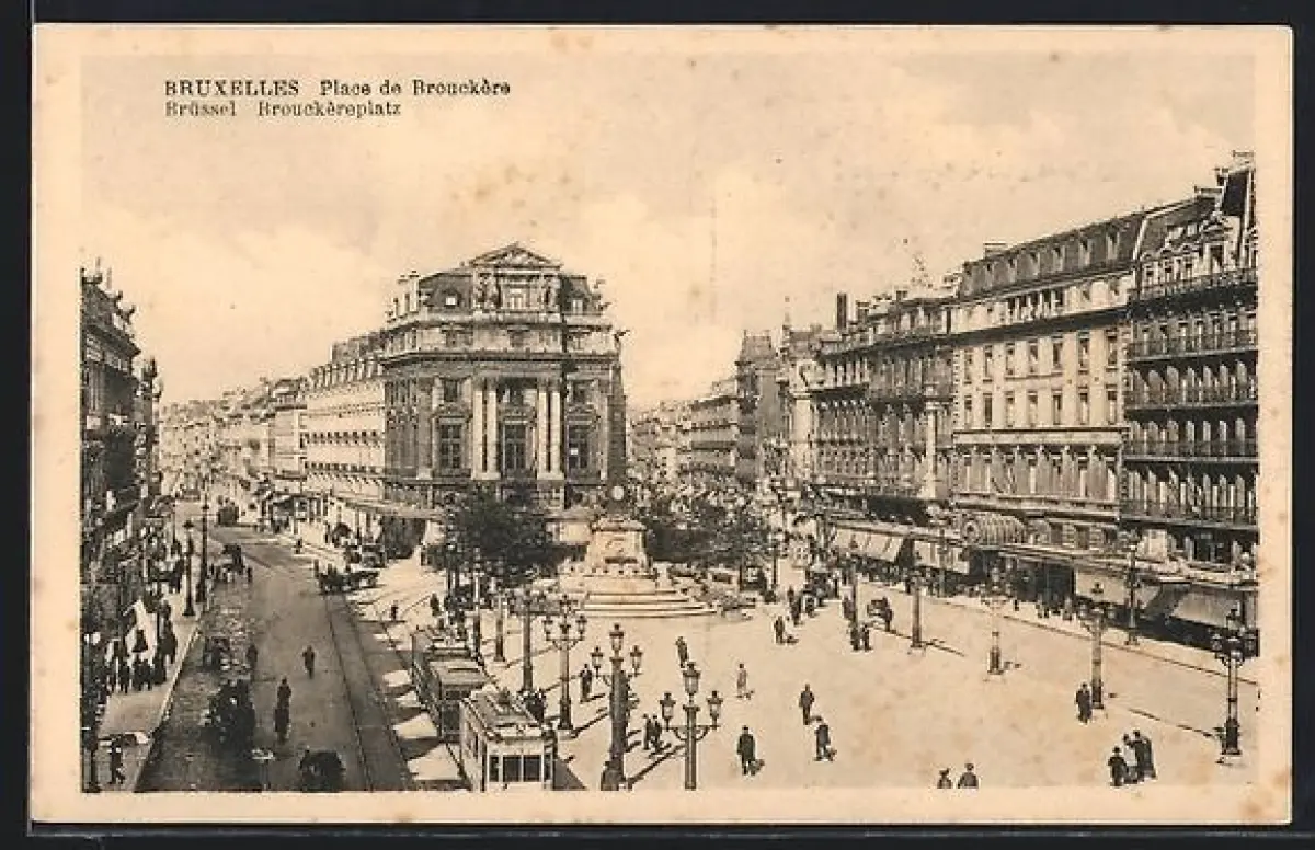 AK Bruxelles, Place de Brouckère, Strassenbahn