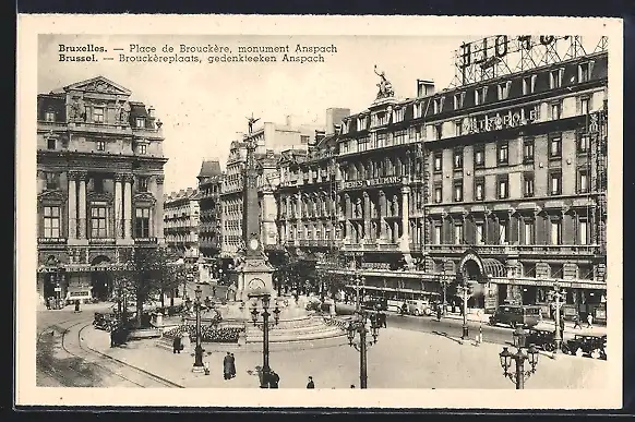 AK Bruxelles, Place de Brouckère, monument Anspach