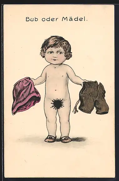 AK Bub oder Mädel, Kind mit Kleidungsstücken