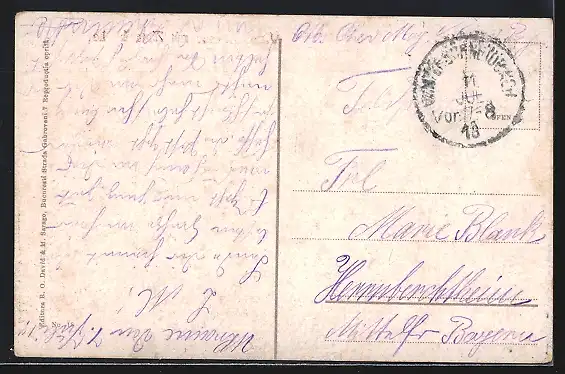 alte Ansichtskarte, gelaufen 1918, Bugspuren oben mittig, guter Zustand