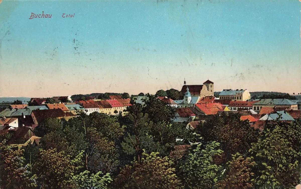 AK Buchau Bochov Totalansicht Kirche Böhmen 1913 gelaufen Postkarte
