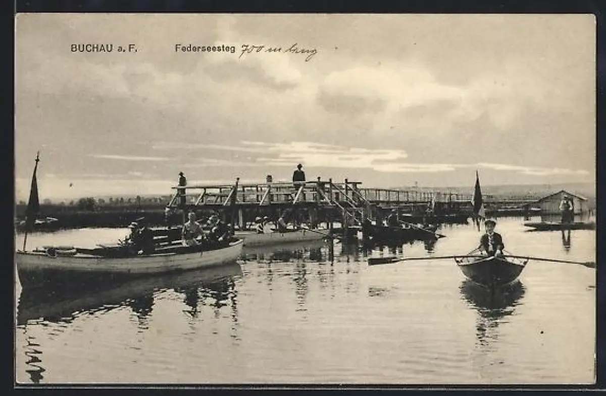 AK Buchau a. F., Federseesteg mit Ruderbooten