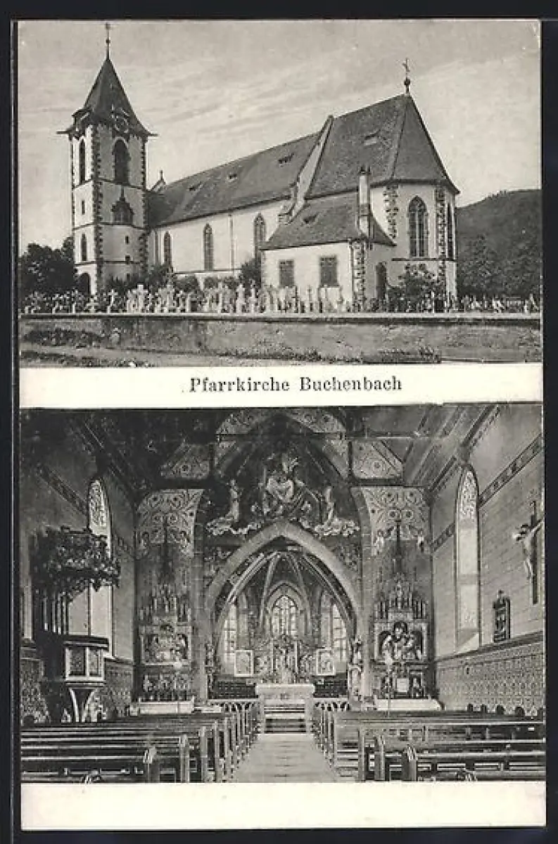 AK Buchenbach / Breisgau, Pfarrkirche aussen und innen
