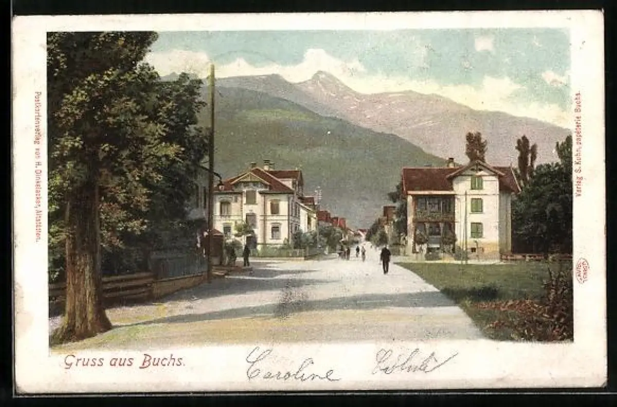 AK Buchs /SG, Strassenpartie mit Anwohnern
