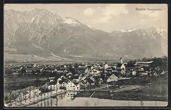 AK Buchs, Totalansicht gegen Gebirgsmassiv