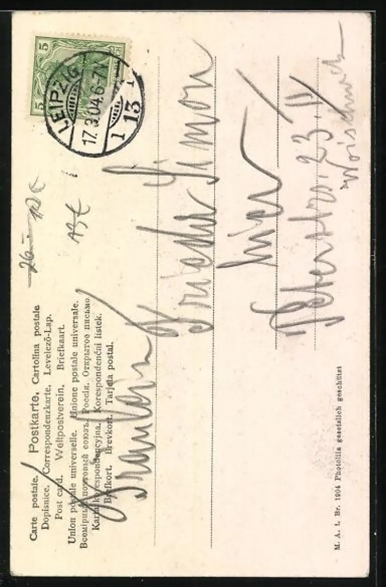 alte Ansichtskarte, gelaufen 1904, Briefmarke entfernt, Stempelspur, guter Zustand