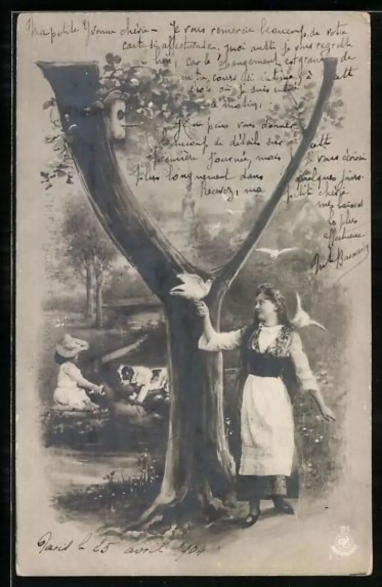 AK Buchstabe Y, Mädchen mit weissen Tauben