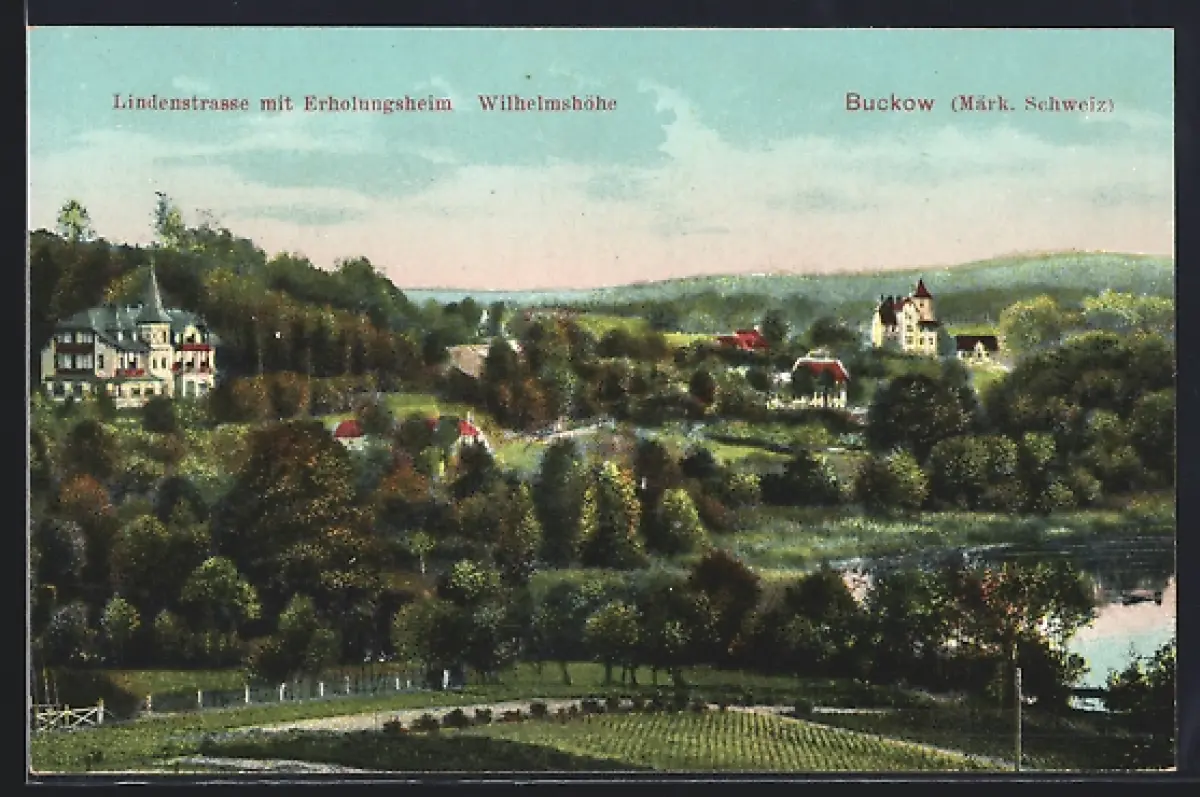 AK Buckow /Märk. Schweiz, Lindenstrasse mit Erholungsheim Wilhelmshöhe