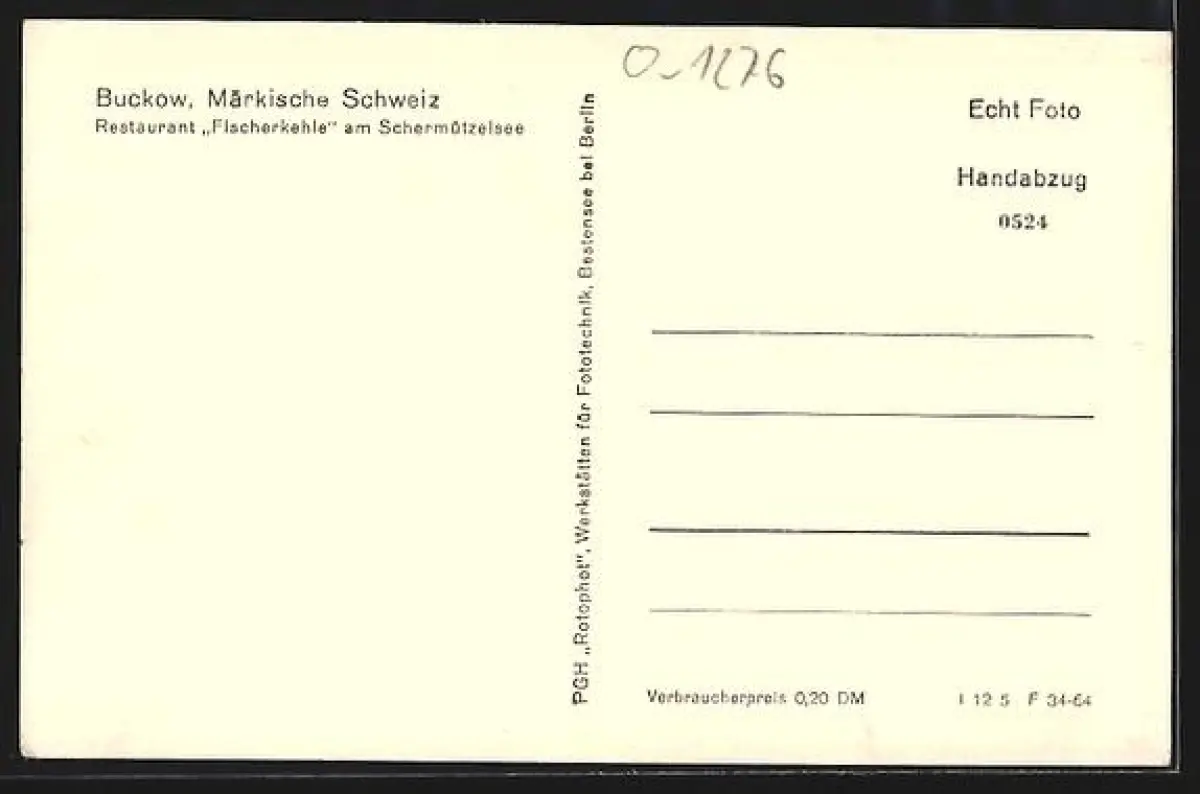 AK Buckow /Märkische Schweiz, Restaurant Fischerkehle am Schermützelsee