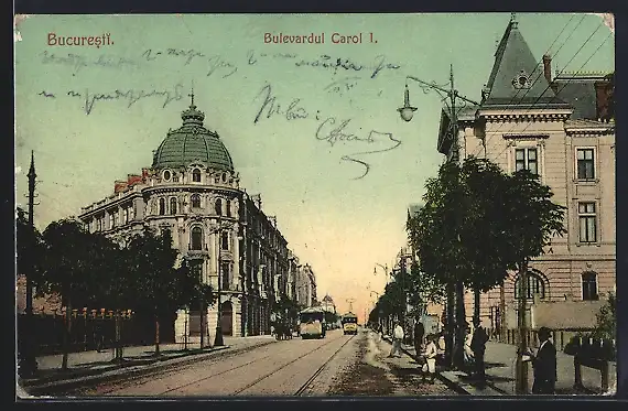 AK Bucuresti, Bulevardul Carol mit Strassenbahn