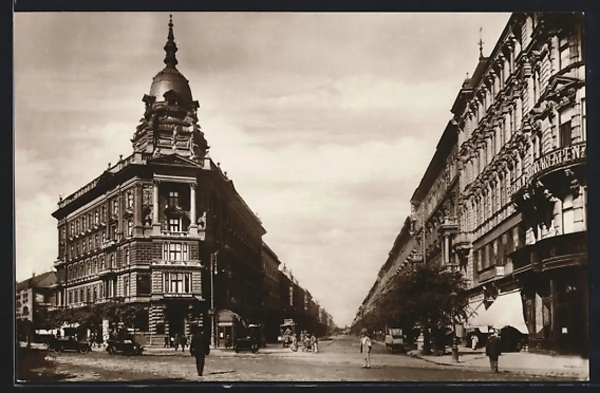 AK Budapest, Andrassy-Strasse, Kreuzung, Turmgebäude