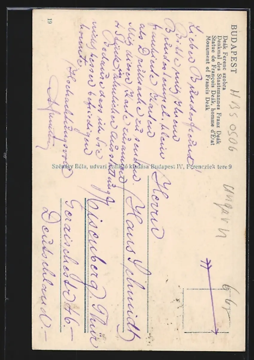 AK Budapest, Denkmal des Staatsmannes Franz Deák