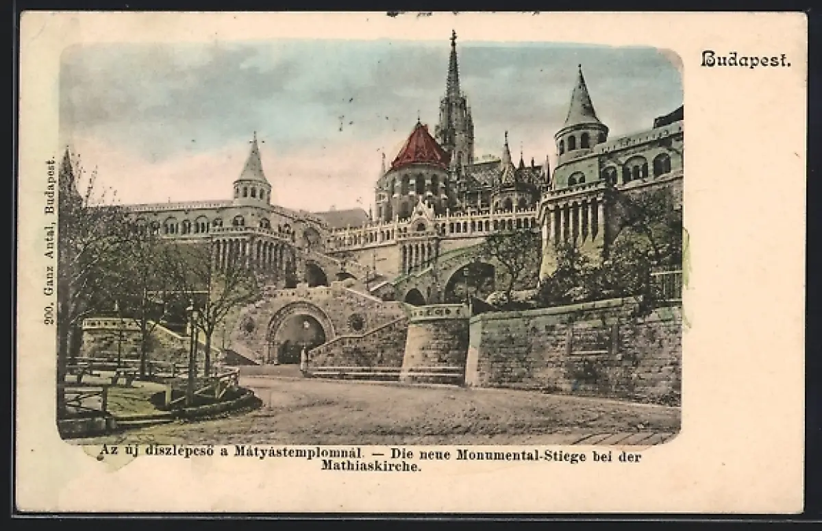 AK Budapest, Die neue Monumental-Stiege bei der Mathiaskirche