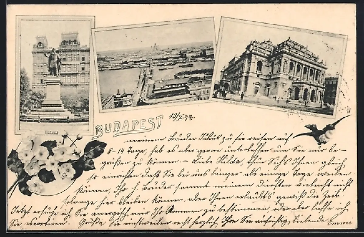 AK Budapest, Fötyös, K. Opernhaus, Teilansicht, Blumen, Schwalbe, Rahmen