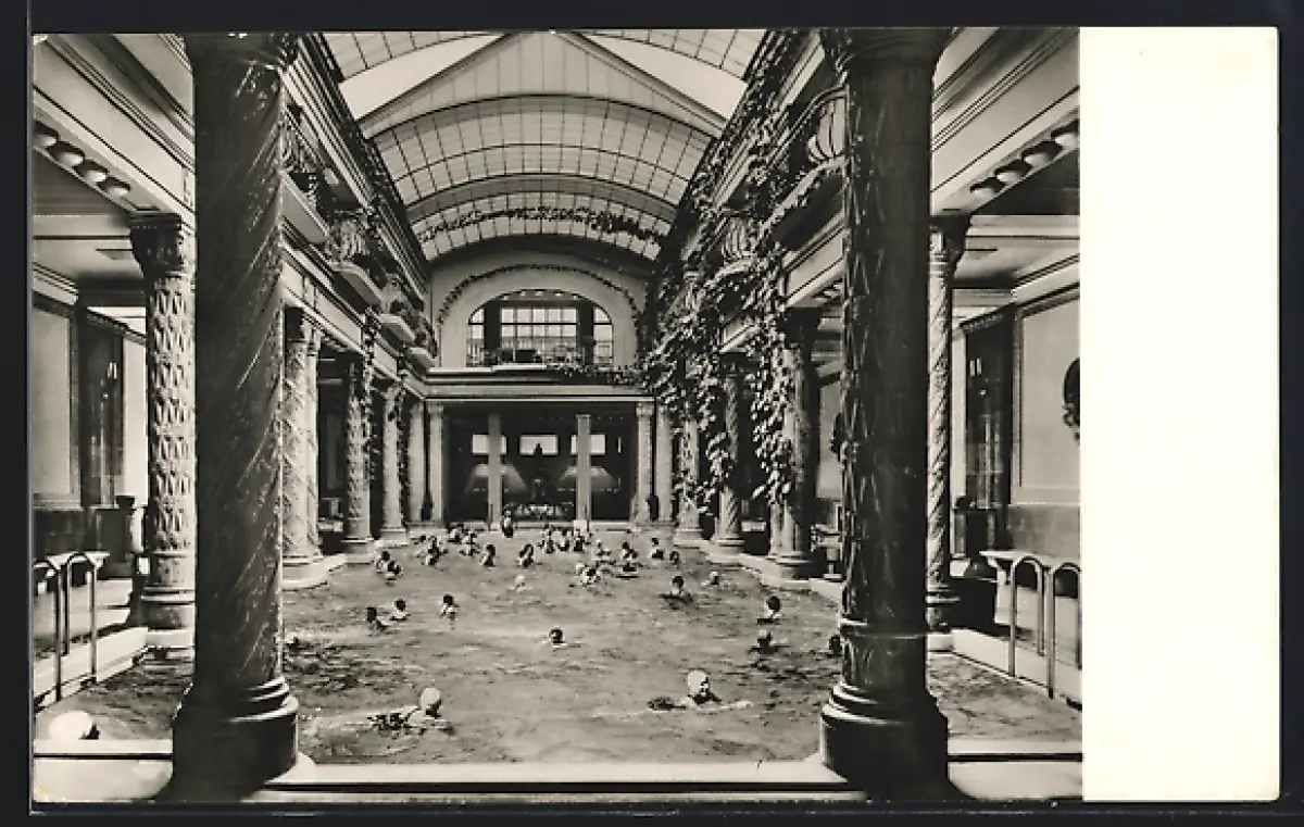 AK Budapest, Hotel St. Gellert, Gedeckte Schwimmhalle mit perlendem Wasser