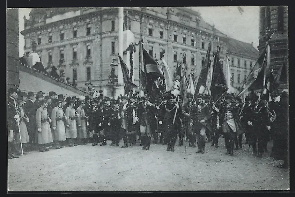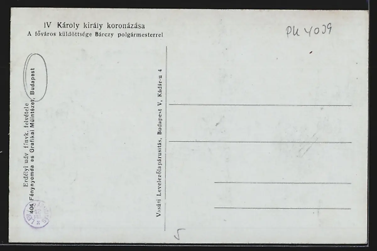 AK Budapest, IV. Károly király koronázása, A föváros küldöttsége Bárczy polgármesterrel