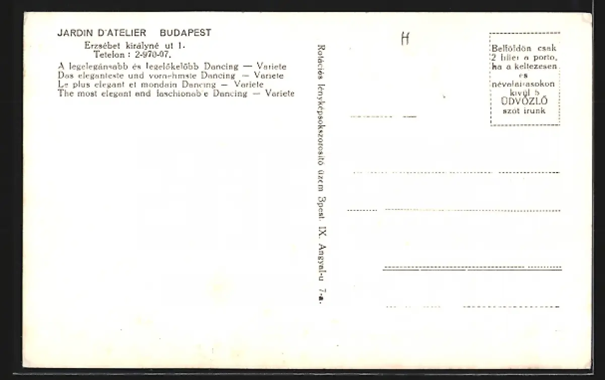 AK Budapest, Jardin d`Atelier, Erzsébet királyné ut. 1