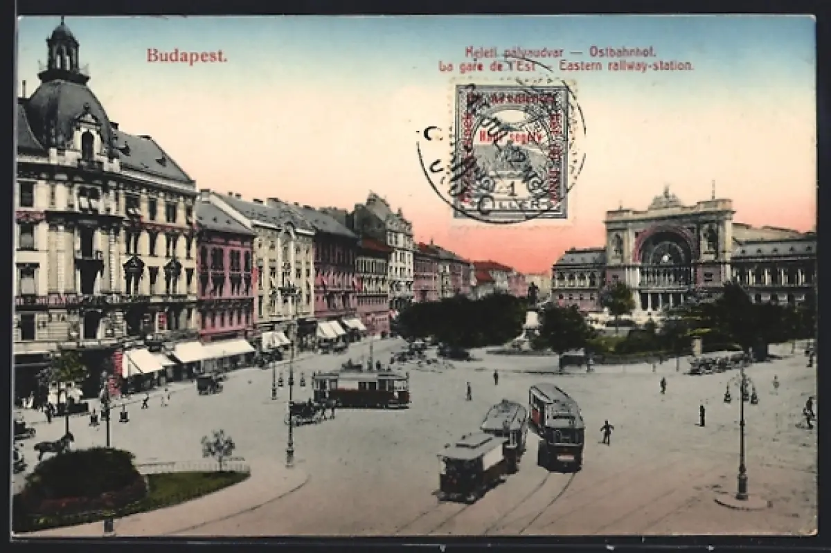 AK Budapest, Keleti pályaudvar, Ostbahnhof mit Strassenbahn
