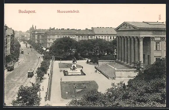 AK Budapest, Muzeum-körut, Strasse Museumring mit Strassenbahn und Nationalmuseum